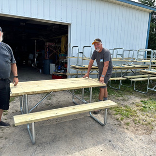 Our first assignment was putting together picnic tables which involved cutting the boards, drilling holes and assembly. 11 tables were put together. Then for the next 2 weeks Janelle and I spent most of our time in the men's bathhouse/restroom! From pressure washing to painting 2 coats of paint. Boy did it look much better when we were done.
