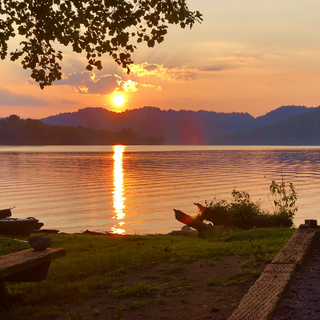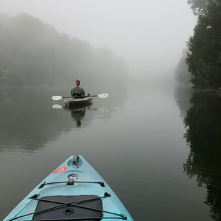 Our first stop was just outside Nashville at a Core of Engeneers campground called Defeated Creek Campground! Other than the name, it was a great place! We loved our campsite right on the water. We stayed there 3 nights and enjoyed the beautiful sunsets (when it would finally cool down) and also took one of the nicest, most beautiful, foggy paddles we have ever done along the uninhabited shores of the Cumberland River.